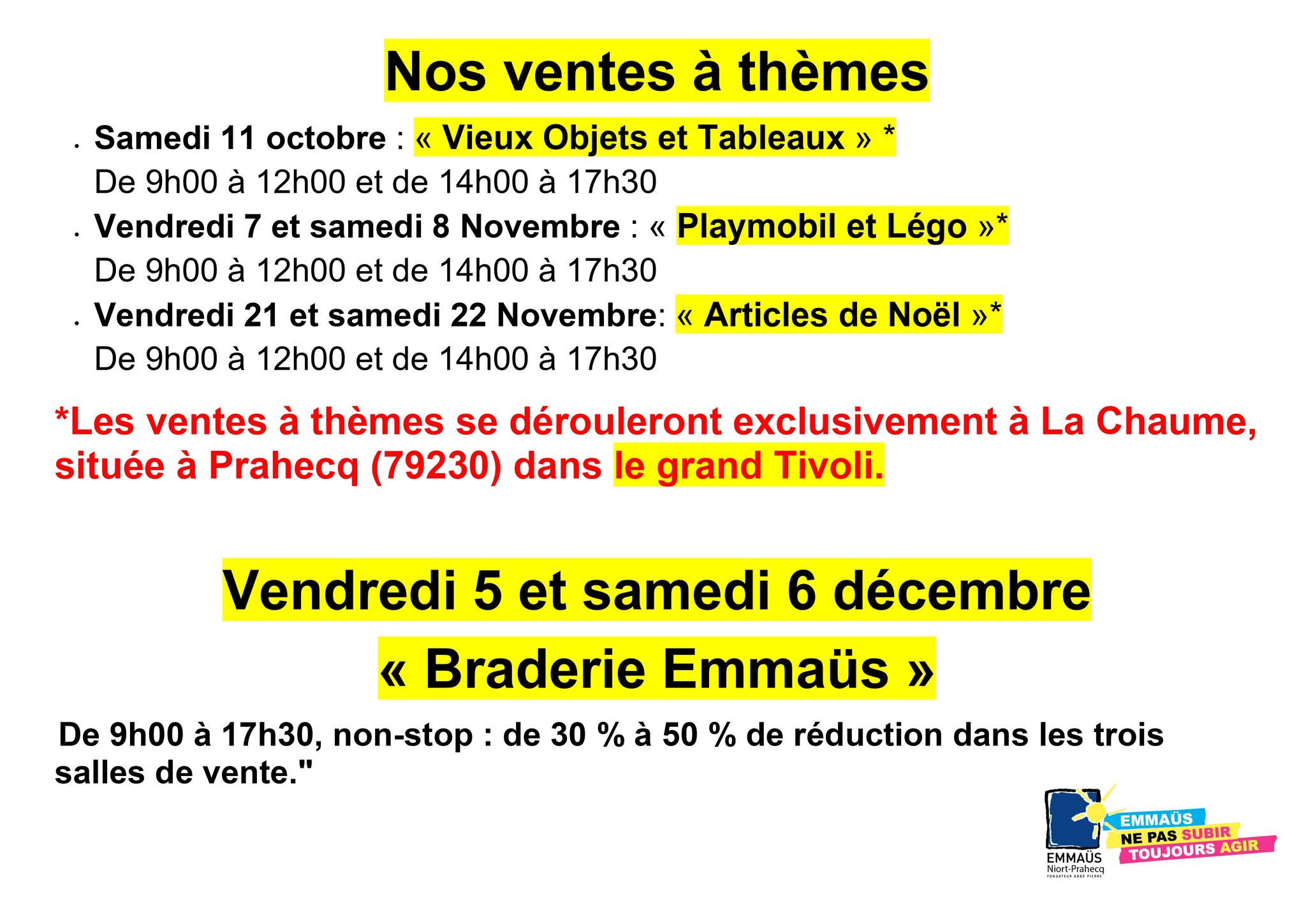 Nos horaires et nos coordonnées de vente et de dépôt de vos dons détaillés par ici…
